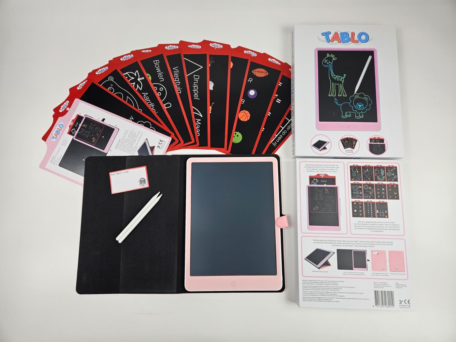 Nee, Tablo is geen digitale tablet en heeft dus geen schermtijd of internetverbinding. Het is een educatief tekenbord waarop kinderen kunnen tekenen, schrijven en leren met behulp van stencils. Tablo combineert het gevoel van een echte tablet zonder de nadelen van een digitaal scherm.